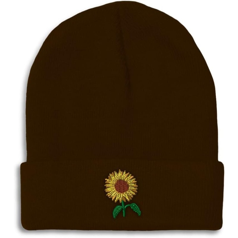 Speedy Pros Beanies for Men Sunflower A Embroidery Flowers and Plants Winter Hats for Women Acrylic Skull Cap 1 Size(Brown Design Only)