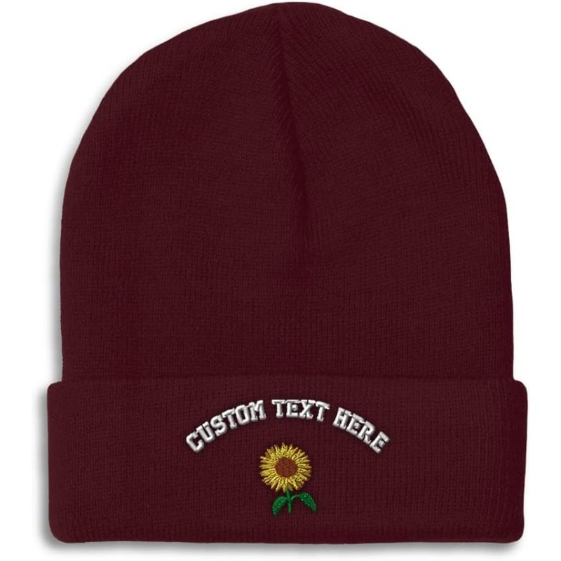 Speedy Pros Beanies for Men Sunflower A Embroidery Flowers and Plants Winter Hats for Women Acrylic Skull Cap 1 Size(Burgundy Personalized Text Here)