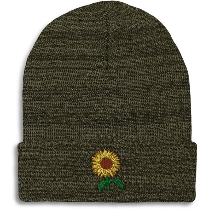 Speedy Pros Beanies for Men Sunflower A Embroidery Flowers and Plants Winter Hats for Women Acrylic Skull Cap 1 Size(Heather Olive Green Design Only)