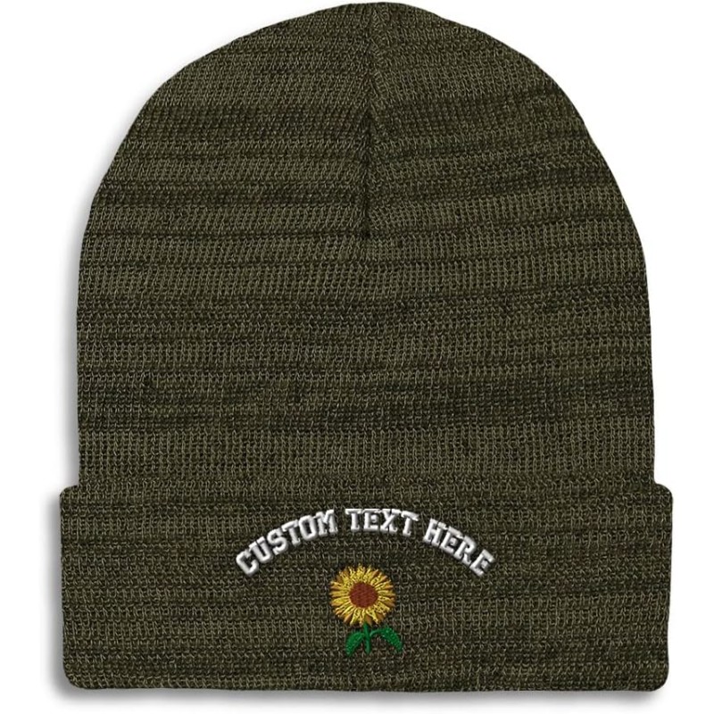 Speedy Pros Beanies for Men Sunflower A Embroidery Flowers and Plants Winter Hats for Women Acrylic Skull Cap 1 Size(Heather Olive Green Personalized Text Here)