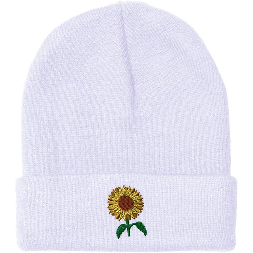 Speedy Pros Beanies for Men Sunflower A Embroidery Flowers and Plants Winter Hats for Women Acrylic Skull Cap 1 Size(White Design Only)