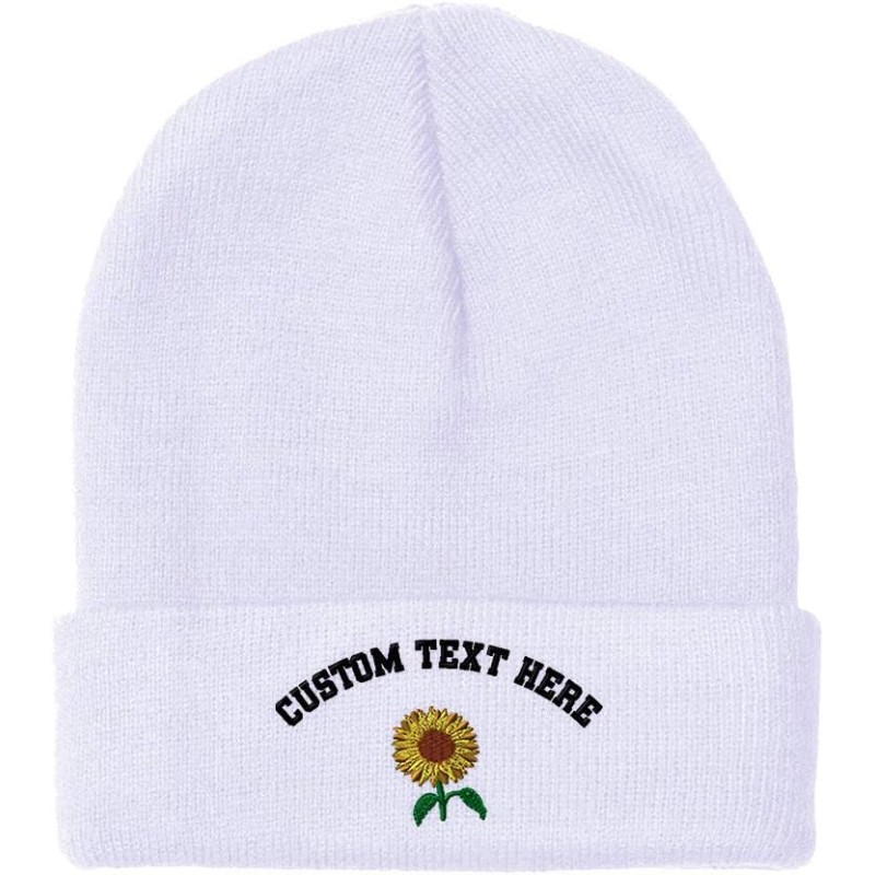 Speedy Pros Beanies for Men Sunflower A Embroidery Flowers and Plants Winter Hats for Women Acrylic Skull Cap 1 Size(White Personalized Text Here)
