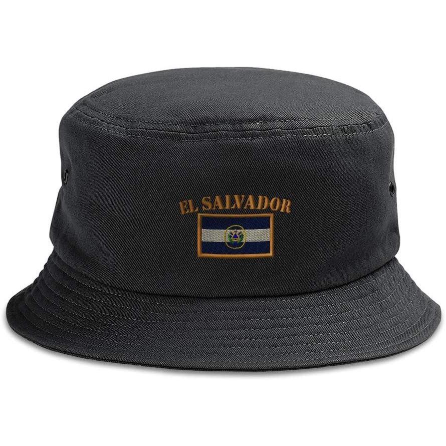 Speedy Pros Bucket Apparel Hat El Salvador Flag Embroidery Cotton Hats for Men & Women(Black)