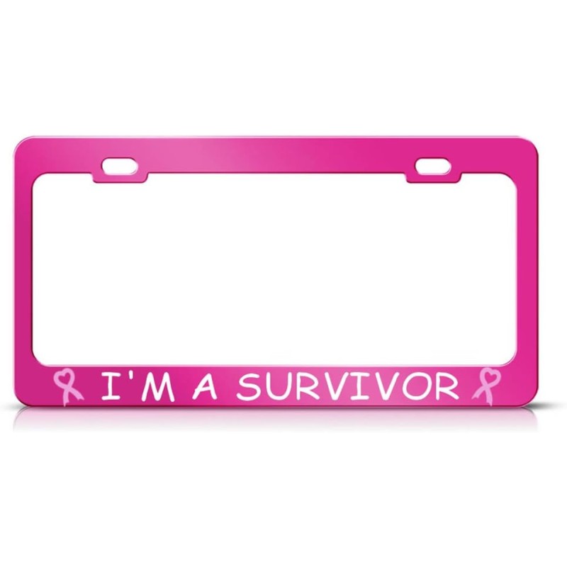 Speedy Pros License Plate Frame I’m A Survivor Breast Cancer Ribbon Hot Pink Car Accessories Hot Pink 2 Holes(Speedy Pros License Plate Frame I’m A Survivor Breast Cancer Ribbon Hot Pink Car Accessories Hot Pink 2 Holes)