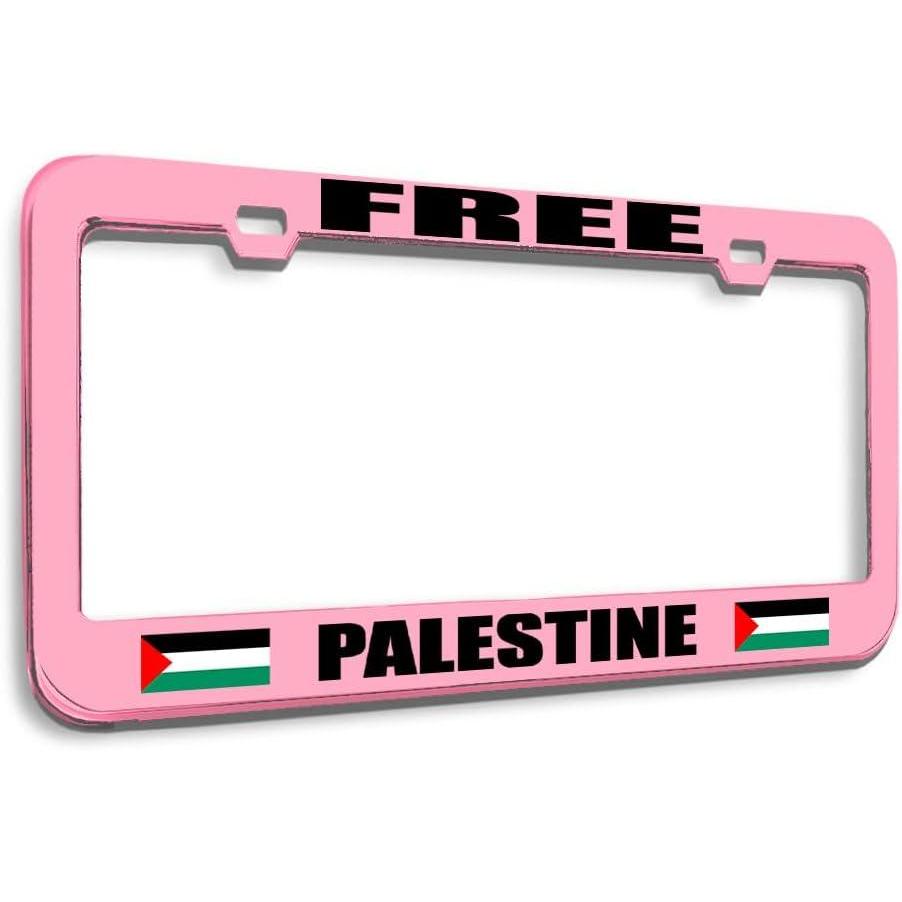 Speedy Pros Metal License Plate Frame Free Palestine Palestinian Country Metal Tag Holder Car Accessories Black 2 Holes 1 Frame(Soft Pink 2 Holes)