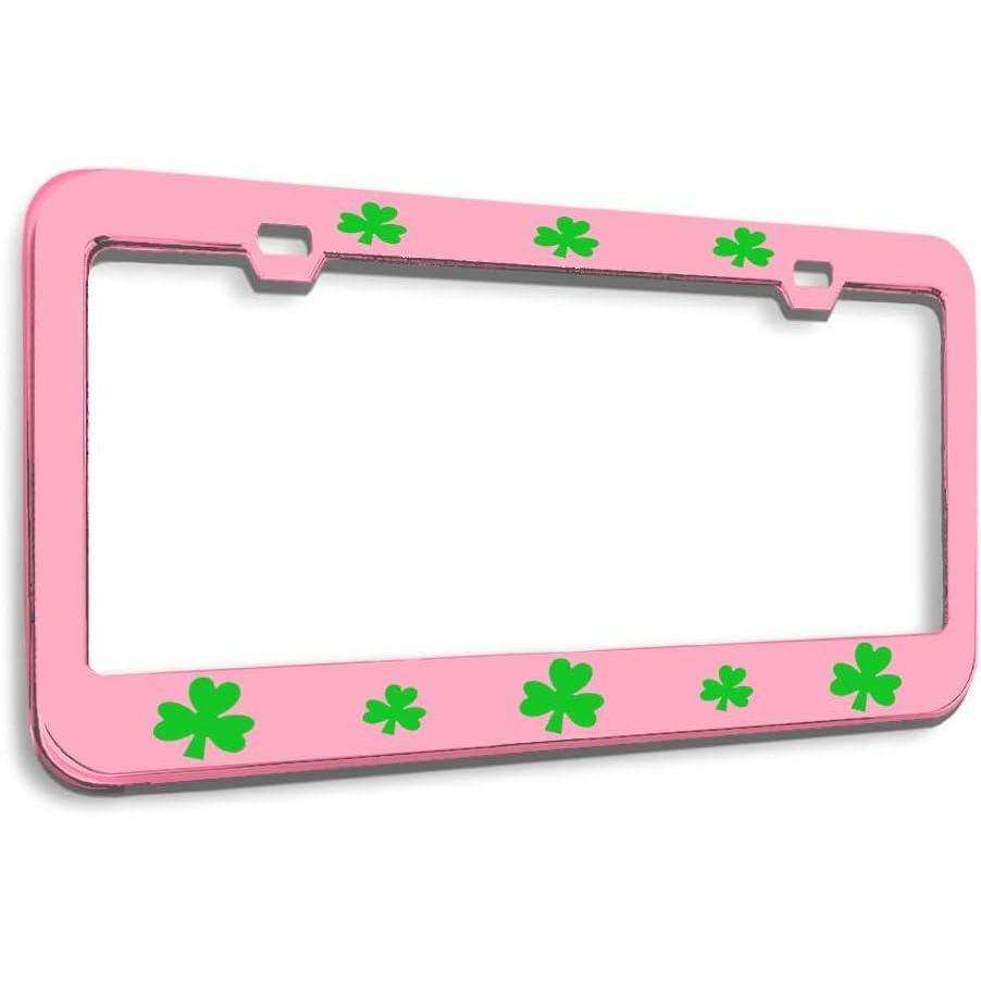 Speedy Pros Metal License Plate Frame Shamrock Green Irish Ireland Metal Tag Holder Car Accessories Black 2 Holes 1 Frame(Soft Pink 2 Holes)