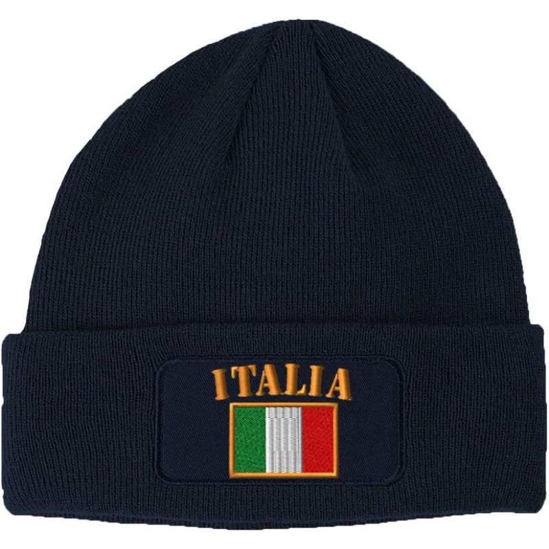 Speedy Pros Patch Beanie for Men & Women Italia Flag Embroidery Skull Cap Hats 1 Size(Navy)