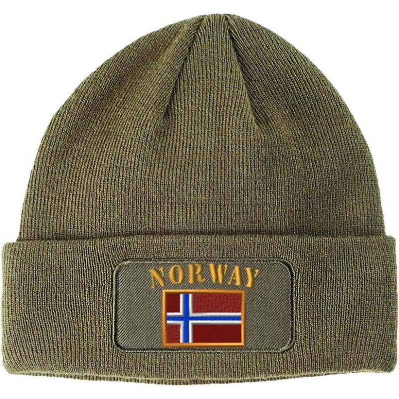 Speedy Pros Patch Beanie for Men & Women Norway Flag Embroidery Skull Cap Hats 1 Size(Olive Green)