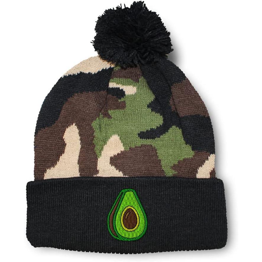 Speedy Pros Pom Pom Beanies for Women Avocado Fruit Style A Embroidery Skull Cap Winter Hats for Men Acrylic 1 Size(Camo Design Only)