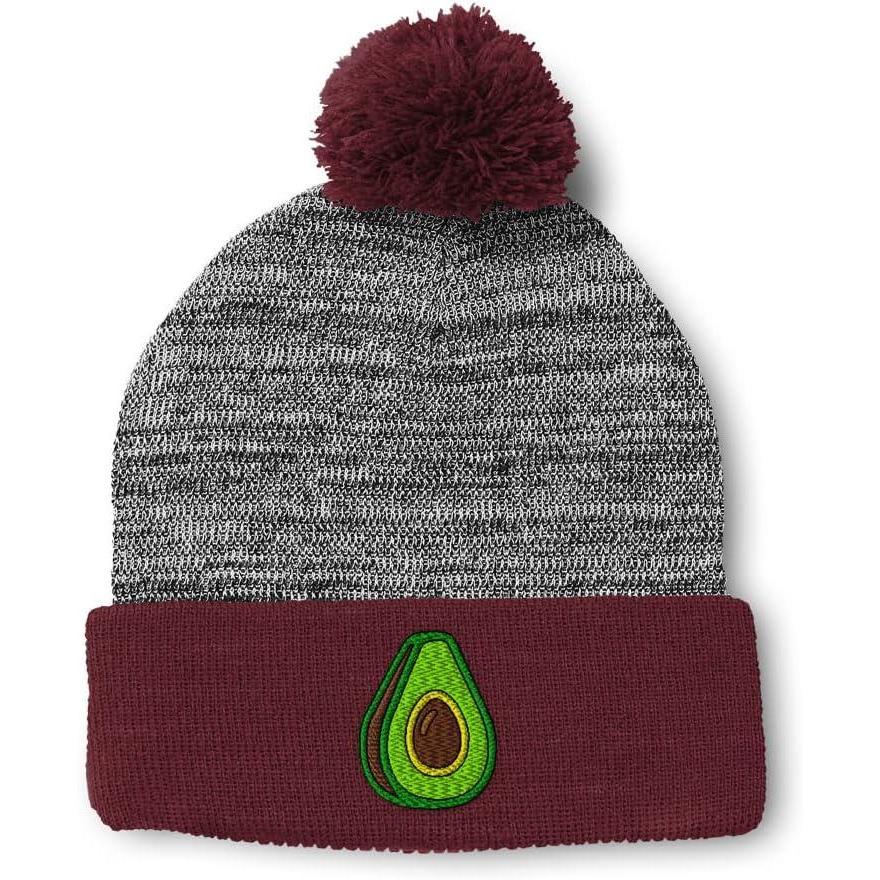 Speedy Pros Pom Pom Beanies for Women Avocado Fruit Style A Embroidery Skull Cap Winter Hats for Men Acrylic 1 Size(Heather Gray Burgundy Design Only)