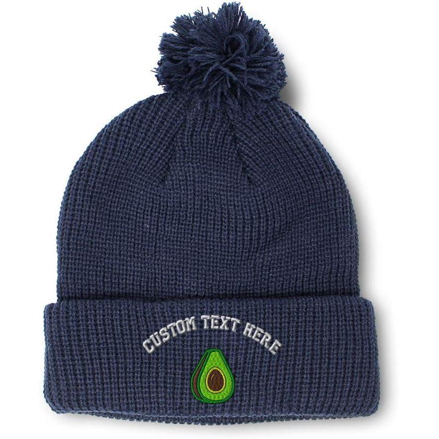 Speedy Pros Pom Pom Beanies for Women Avocado Fruit Style A Embroidery Skull Cap Winter Hats for Men Acrylic 1 Size(Navy Personalized Text Here)
