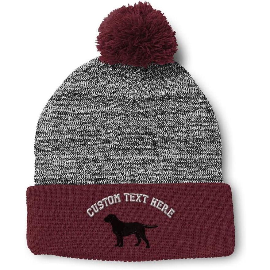 Speedy Pros Pom Pom Beanies for Women Black Labrador Retriever Lab Embroidery Skull Cap Dogs Winter Hats for Men 1 Size(Heather Gray Burgundy Personalized Text Here)