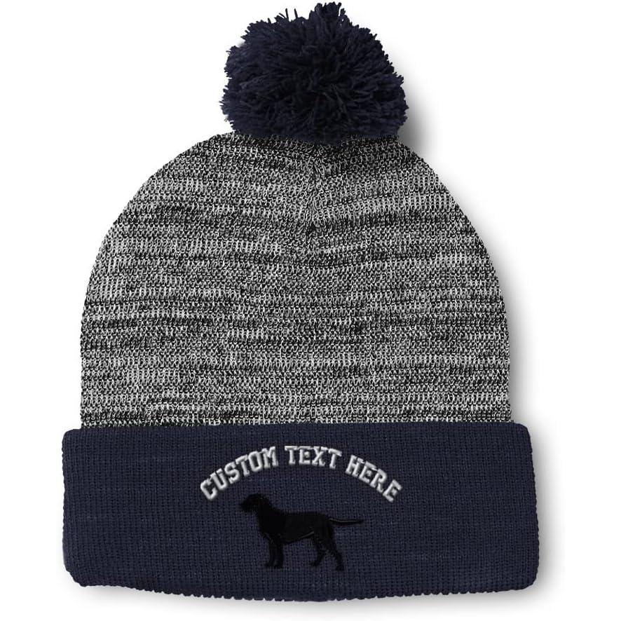 Speedy Pros Pom Pom Beanies for Women Black Labrador Retriever Lab Embroidery Skull Cap Dogs Winter Hats for Men 1 Size(Black Grey Personalized Text Here)