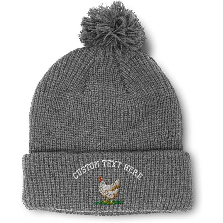 Speedy Pros Pom Pom Beanies for Women Chicken Hen Embroidery Skull Cap Winter Hats for Men Acrylic 1 Size(Light Grey Personalized Text Here)