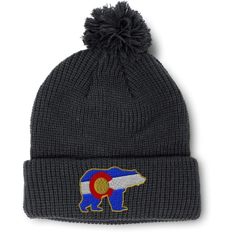 Speedy Pros Pom Pom Beanies for Women Colorado State Flag Bear Embroidery Skull Cap Winter Hats for Men Acrylic 1 Size(American X Design Only)