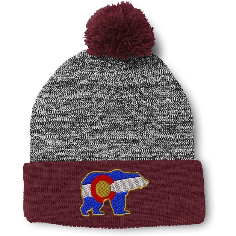 Speedy Pros Pom Pom Beanies for Women Colorado State Flag Bear Embroidery Skull Cap Winter Hats for Men Acrylic 1 Size(Heather Gray Burgundy Design Only)