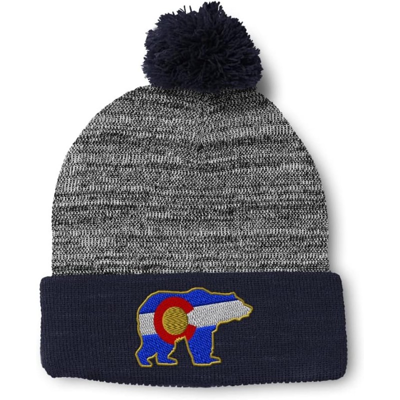 Speedy Pros Pom Pom Beanies for Women Colorado State Flag Bear Embroidery Skull Cap Winter Hats for Men Acrylic 1 Size(Heather Gray Navy Design Only)
