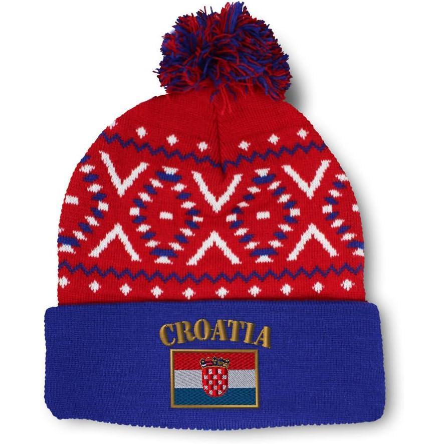 Speedy Pros Pom Pom Beanies for Women Croatia Flag Embroidery Skull Cap Flags Winter Hats for Men Acrylic 1 Size(Black Design Only)