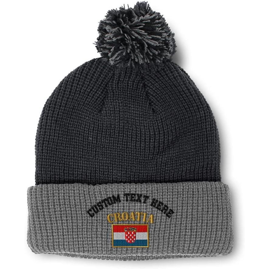 Speedy Pros Pom Pom Beanies for Women Croatia Flag Embroidery Skull Cap Flags Winter Hats for Men Acrylic 1 Size(Black Grey Personalized Text Here)