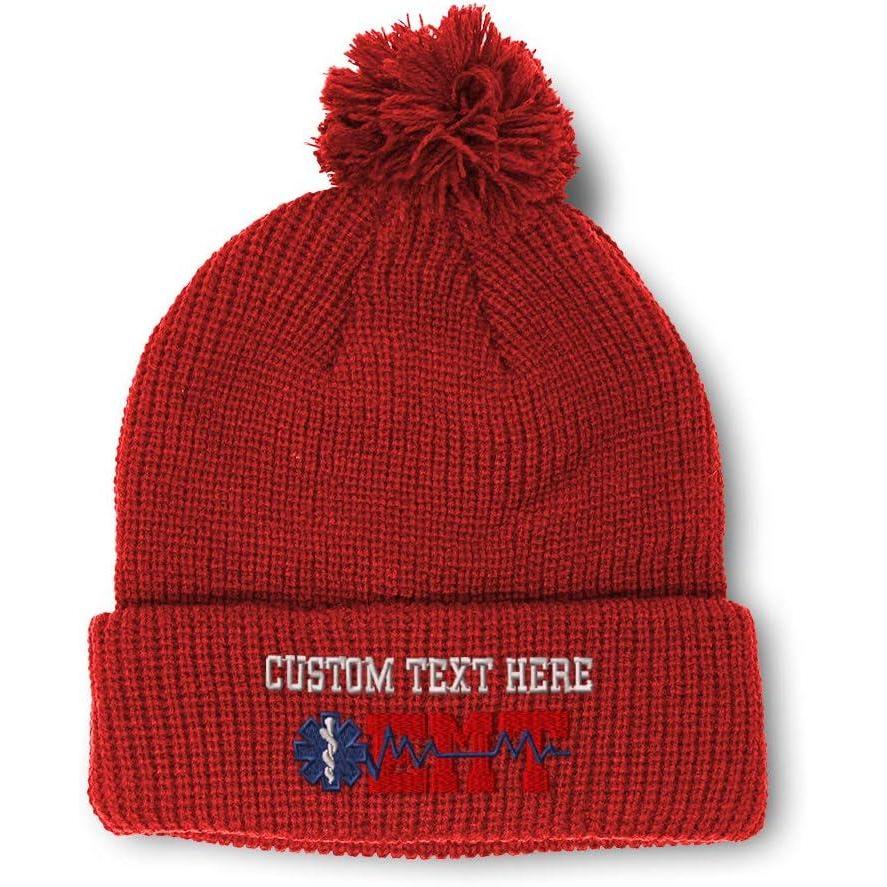 Speedy Pros Pom Pom Beanies for Women EMT Paramedic Embroidery Skull Cap Paramedic Winter Hats for Men Acrylic 1 Size(Red Personalized Text Here)