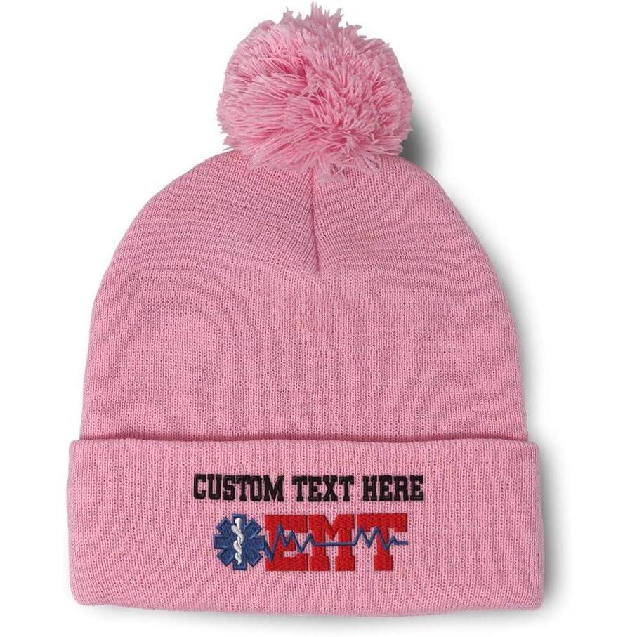 Speedy Pros Pom Pom Beanies for Women EMT Paramedic Embroidery Skull Cap Paramedic Winter Hats for Men Acrylic 1 Size(Soft Pink Personalized Text Here)