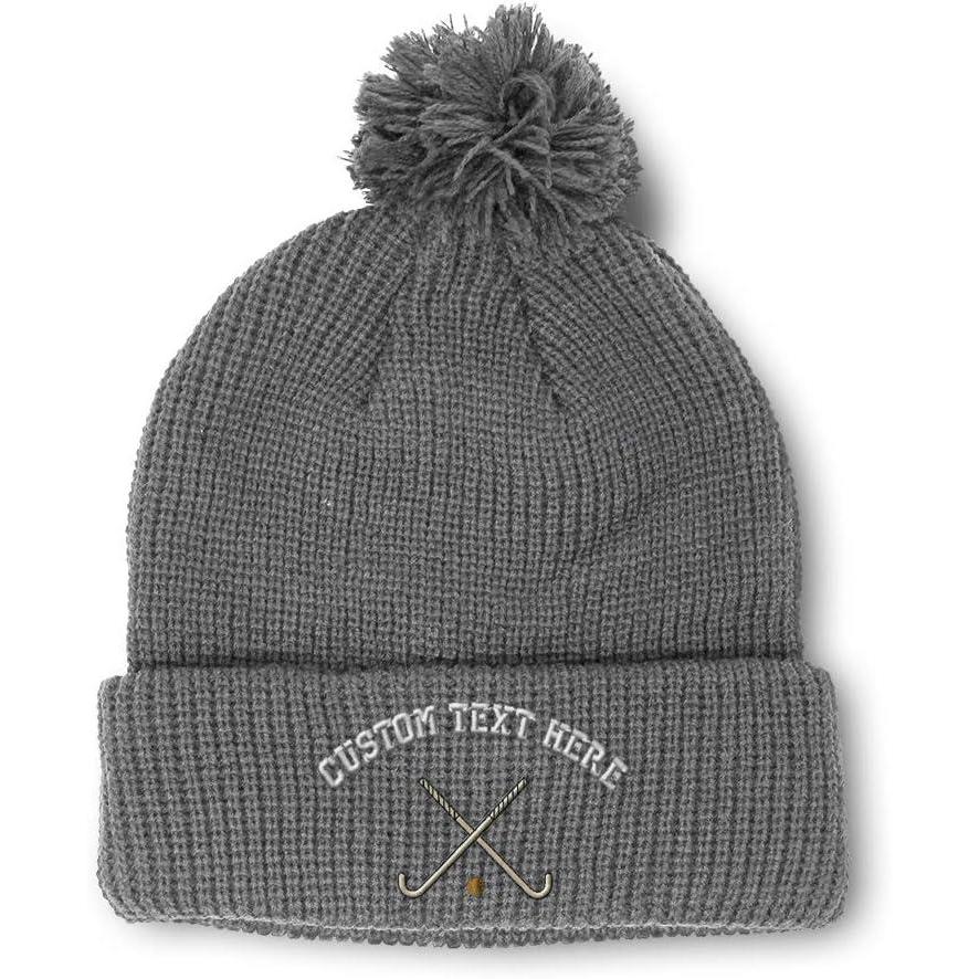 Speedy Pros Pom Pom Beanies for Women Field Hockey Sport A Embroidery Skull Cap Winter Hats for Men Acrylic 1 Size(Light Grey Personalized Text Here)