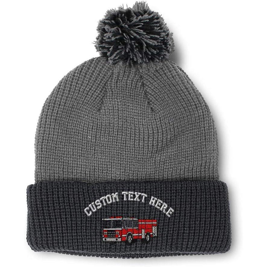 Speedy Pros Pom Pom Beanies for Women Fire Engine Truck A Embroidery Skull Cap Winter Hats for Men Acrylic 1 Size(Grey Black Personalized Text Here)