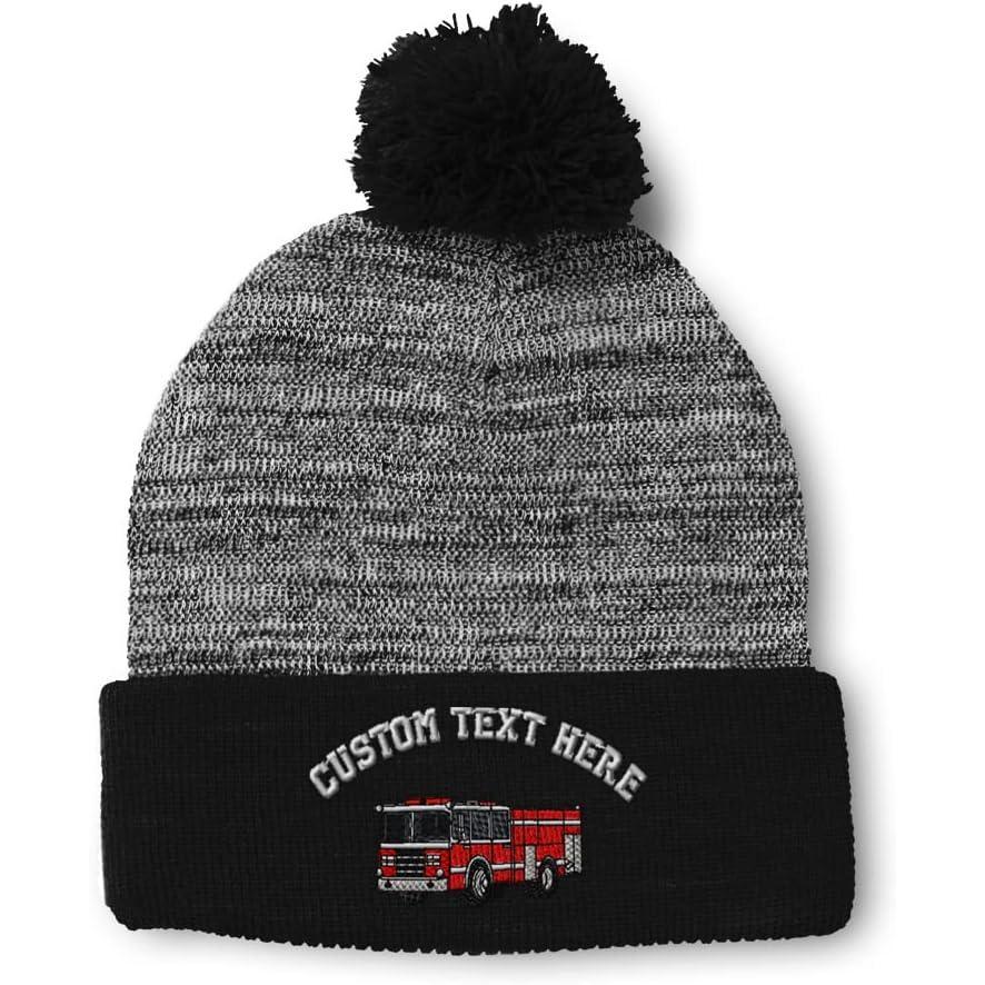 Speedy Pros Pom Pom Beanies for Women Fire Engine Truck A Embroidery Skull Cap Winter Hats for Men Acrylic 1 Size(Heather Gray Black Personalized Text Here)