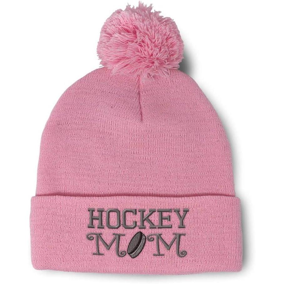 Speedy Pros Pom Pom Beanies for Women Hockey Mom A Embroidery Skull Cap Humor Winter Hats for Men Acrylic 1 Size(Soft Pink Design Only)