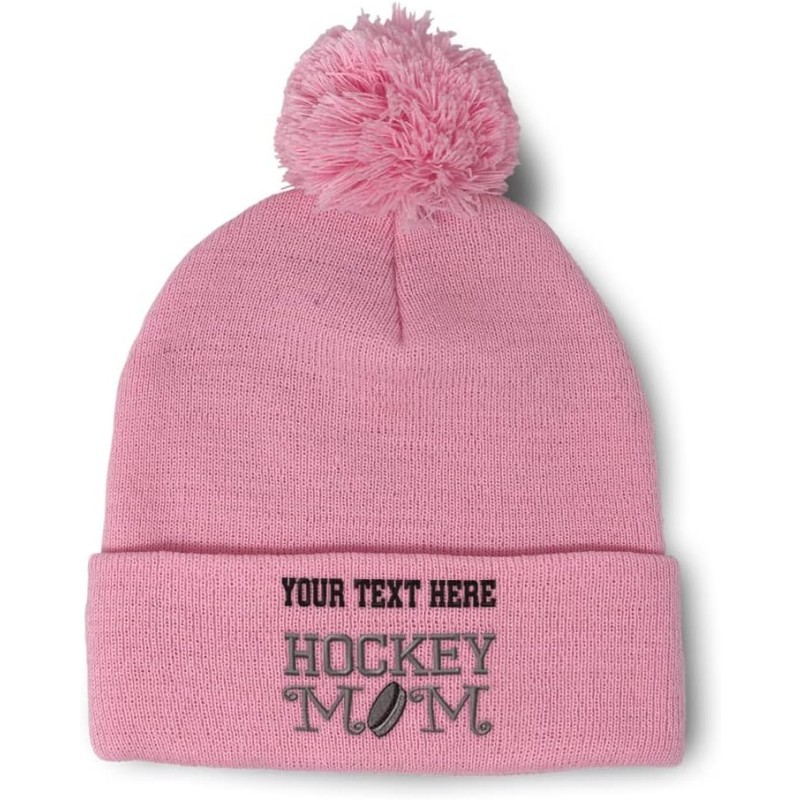 Speedy Pros Pom Pom Beanies for Women Hockey Mom A Embroidery Skull Cap Humor Winter Hats for Men Acrylic 1 Size(Soft Pink Personalized Text Here)
