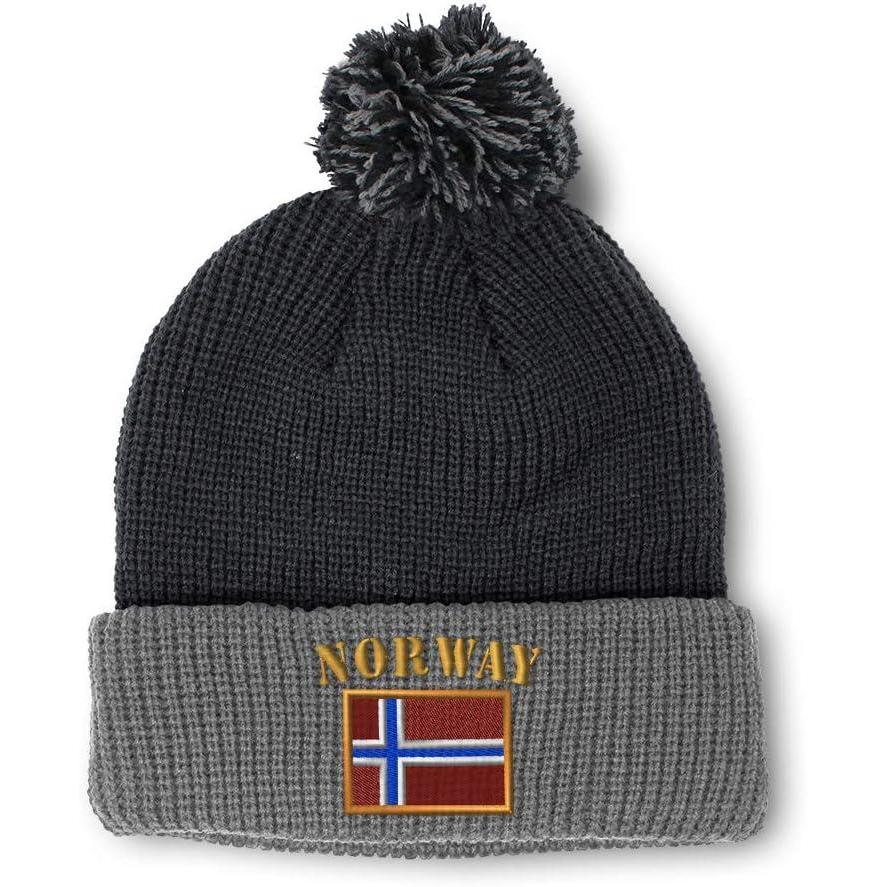 Speedy Pros Pom Pom Beanies for Women Norway Flag Embroidery Skull Cap Flags Winter Hats for Men Acrylic 1 Size(Black Grey Design Only)