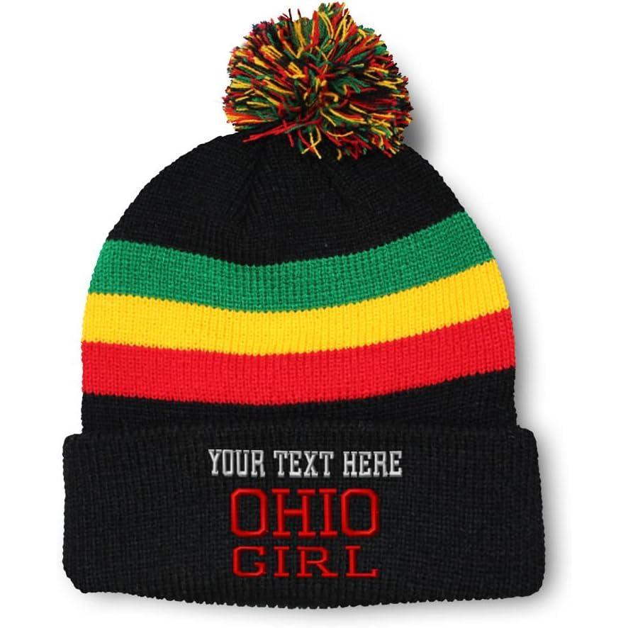 Speedy Pros Pom Pom Beanies for Women Ohio Girl State USA America Embroidery Skull Cap Girl Winter Hats for Men 1 Size(Rasta Personalized Text Here)
