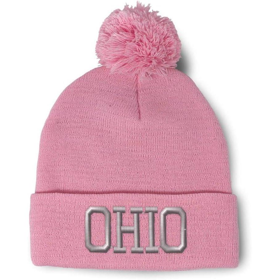 Speedy Pros Pom Pom Beanies for Women Ohio State USA America A Embroidery Skull Cap Winter Hats for Men Acrylic 1 Size(Soft Pink Design Only)