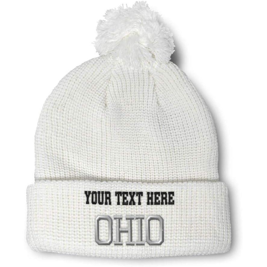 Speedy Pros Pom Pom Beanies for Women Ohio State USA America A Embroidery Skull Cap Winter Hats for Men Acrylic 1 Size(White Personalized Text Here)