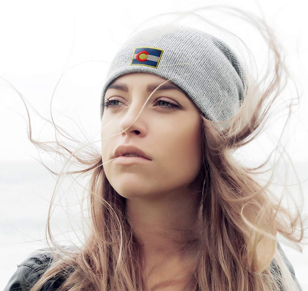 Speedy Pros Slouchy Beanie for Men Colorado Flag State Embroidery Cotton Women Skull Cap(Light Grey Design Only)