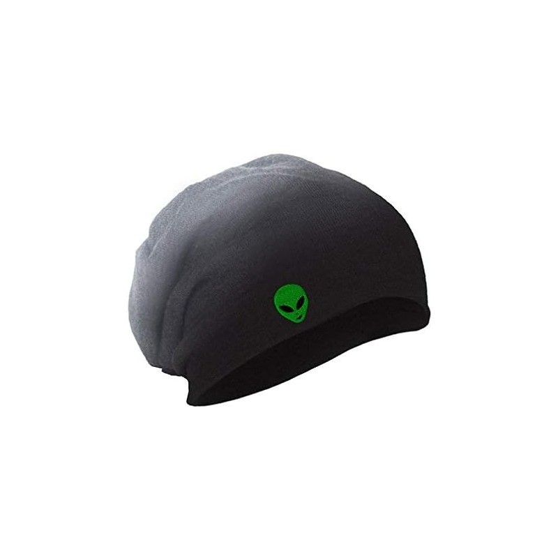 Speedy Pros Slouchy Beanie for Men Green Happy Alien Face Embroidery Acrylic Women Skull Cap(Black Grey Design Only)