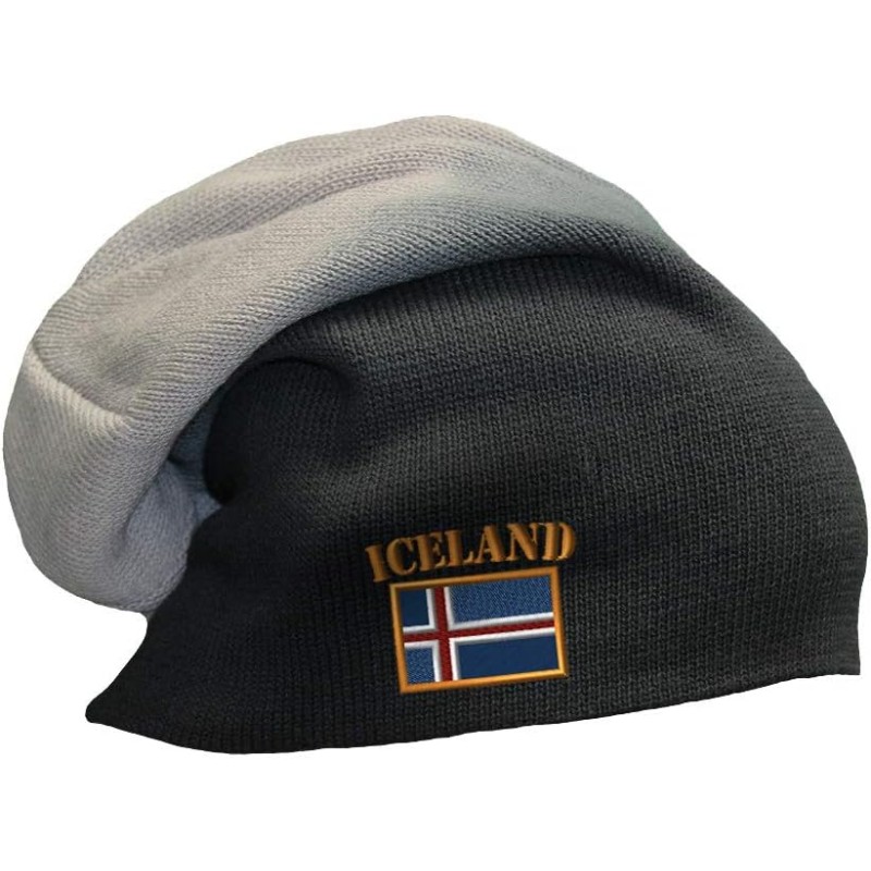 Speedy Pros Slouchy Beanie for Men Iceland Flag Embroidery Flags Winter Hats Women Skull Cap(Black Grey)