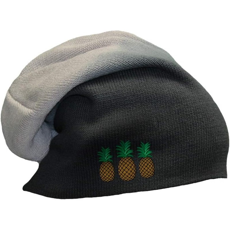 Speedy Pros Slouchy Beanie for Men Pineapples Embroidery Winter Hats Acrylic Women Skull Cap(Black Grey Design Only)