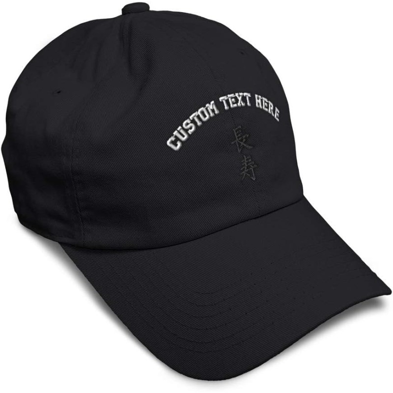 Speedy Pros Soft Baseball Cap Long Life Japanese Kanji Grey Symbols Cotton Embroidered Dad Hats for Men & Women(Black Personalized Text Here)