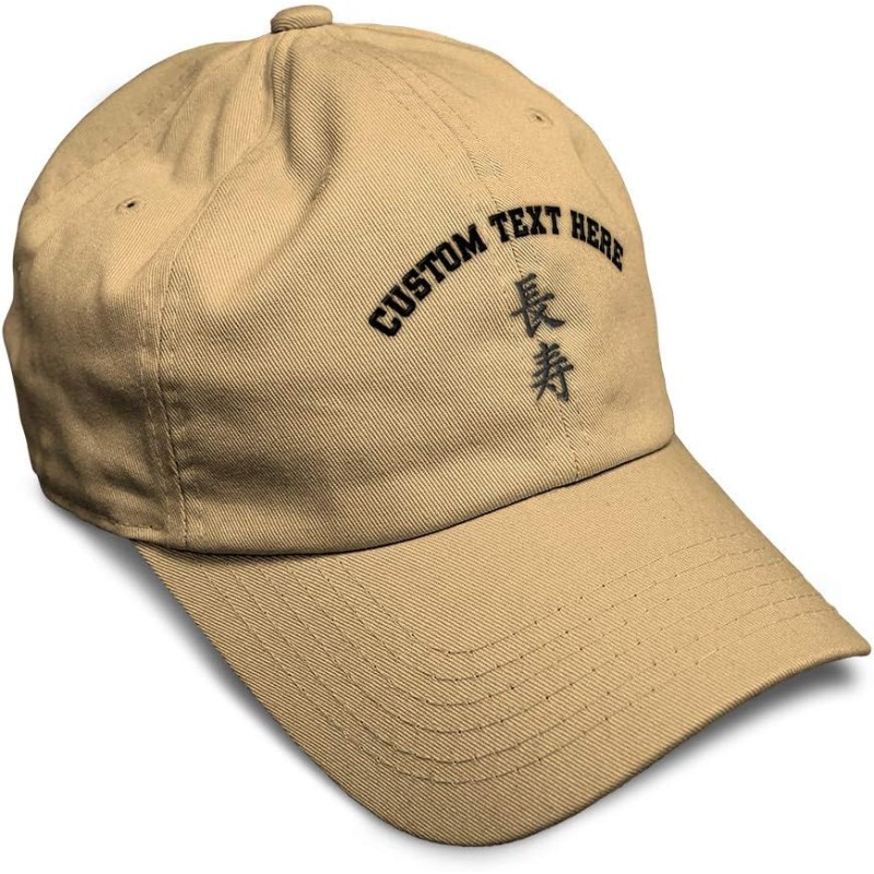 Speedy Pros Soft Baseball Cap Long Life Japanese Kanji Grey Symbols Cotton Embroidered Dad Hats for Men & Women(Khaki Personalized Text Here)