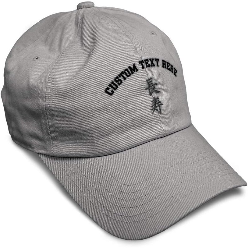 Speedy Pros Soft Baseball Cap Long Life Japanese Kanji Grey Symbols Cotton Embroidered Dad Hats for Men & Women(Light Grey Personalized Text Here)