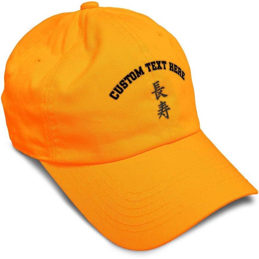Speedy Pros Soft Baseball Cap Long Life Japanese Kanji Grey Symbols Cotton Embroidered Dad Hats for Men & Women(Orange Personalized Text Here)