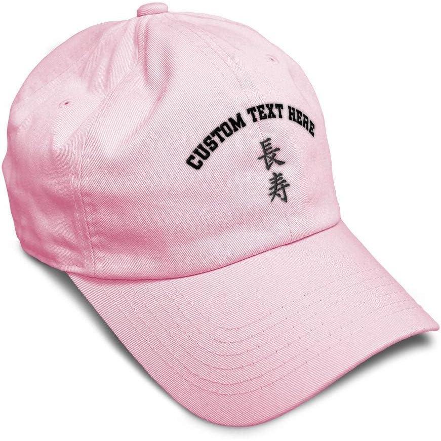 Speedy Pros Soft Baseball Cap Long Life Japanese Kanji Grey Symbols Cotton Embroidered Dad Hats for Men & Women(Soft Pink Personalized Text Here)