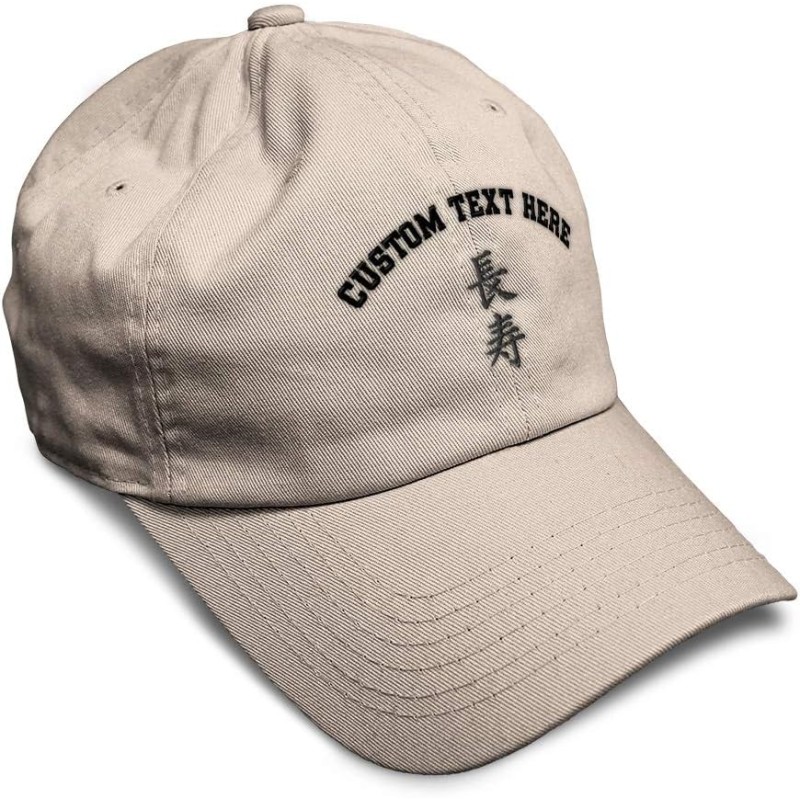 Speedy Pros Soft Baseball Cap Long Life Japanese Kanji Grey Symbols Cotton Embroidered Dad Hats for Men & Women(Stone Personalized Text Here)