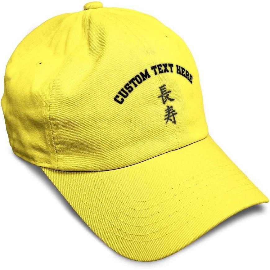 Speedy Pros Soft Baseball Cap Long Life Japanese Kanji Grey Symbols Cotton Embroidered Dad Hats for Men & Women(Yellow Personalized Text Here)