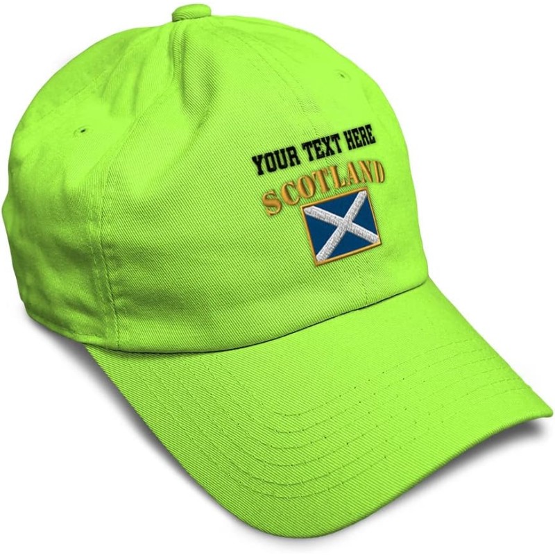 Speedy Pros Soft Baseball Cap Scotland Flag Flags World Cup Soccer Cotton Embroidered Dad Hats for Men & Women(Lime Personalized Text Here)