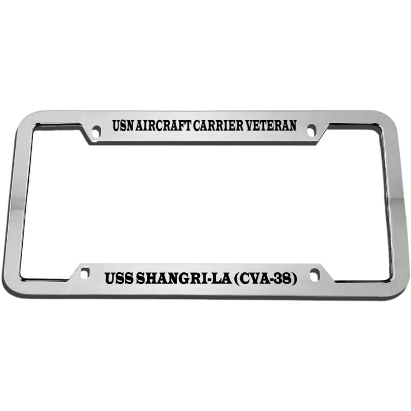 Speedy Pros USN Aircraft Carrier Veteran USS Shangri-La (Cva-38) Zinc Metal License Plate Frame Car Auto Tag Holder – Chrome 4 Holes(Speedy Pros USN Aircraft Carrier Veteran USS Shangri-La (Cva-38) Zinc Metal License Plate Frame Car Auto Tag Holder – Chrome 4 Holes)
