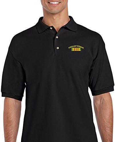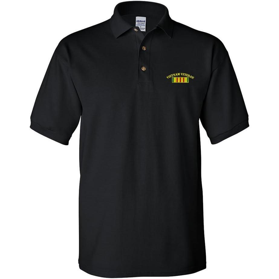 Speedy Pros Vietnam Veteran Flag Embroidery Design Adult Unisex Cotton Polo Shirt(Black)