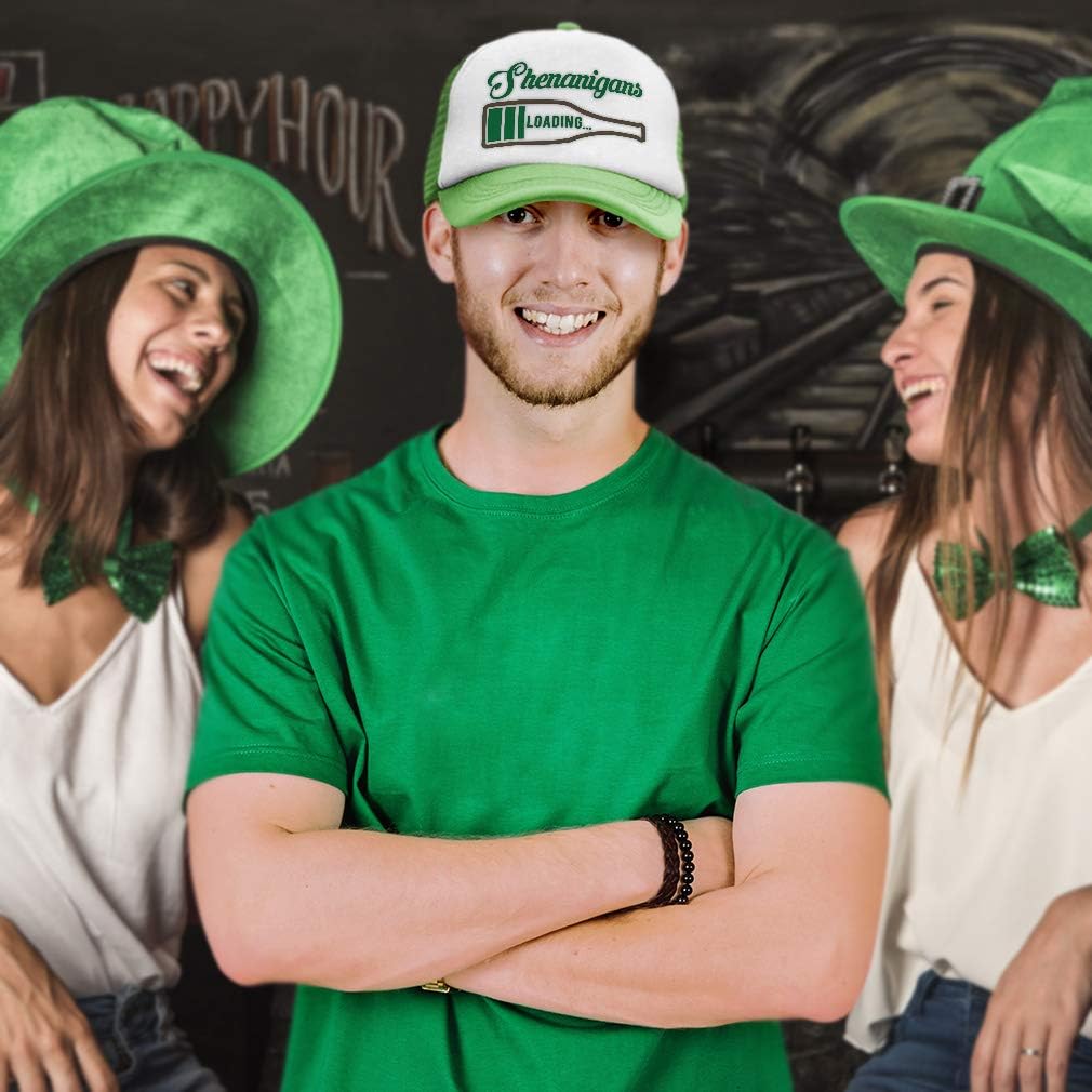 Trucker Hat Shenanigans Irish St Patrick’s Patty Clover Polyester 1 Size(Kelly Green)