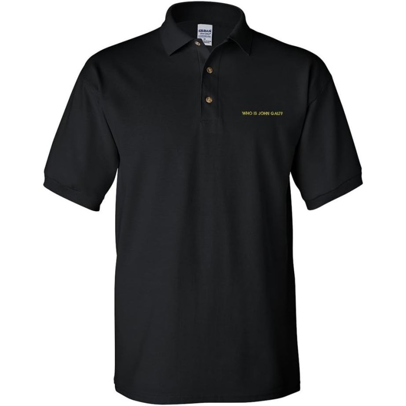 Who is John Galt? Embroidery Design Adult Unisex Cotton Polo Shirt(Black)